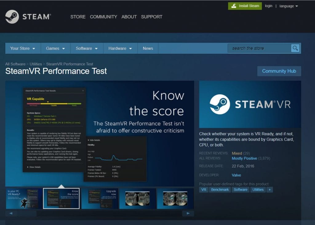 1. Pasang terlebih dahulu aplikasi SteamVR Performance Test