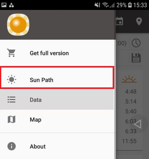 4. Akan muncul berbagai macam menu, lalu kamu tap pada tombol sun path.