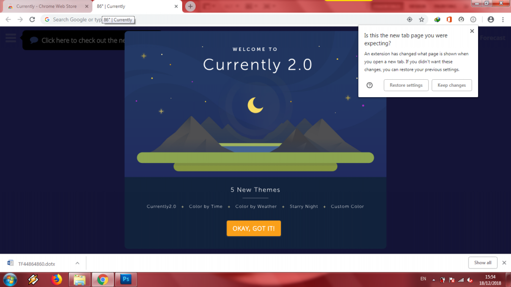 6. Apabila ada muncul tampilan seperti ini, maka klik Keep Changes. Ini untuk menerapkan extension yang kamu pasangkan tadi ketika membuka halaman tab baru. Sebenarnya udah selesai dalam pemasangan extension prakiraan cuaca. Namun, kamu yang ingin melakukan pengaturan pada ektension tersebut. Silahkan ikuti langkah ke-7.