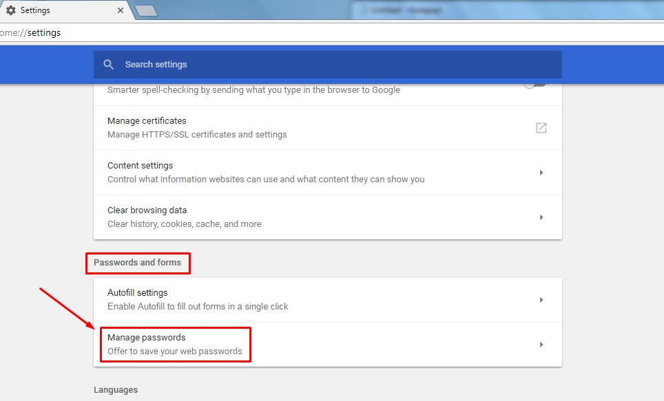 4. Cari Passwords and forms lalu klik Manage Paswords.