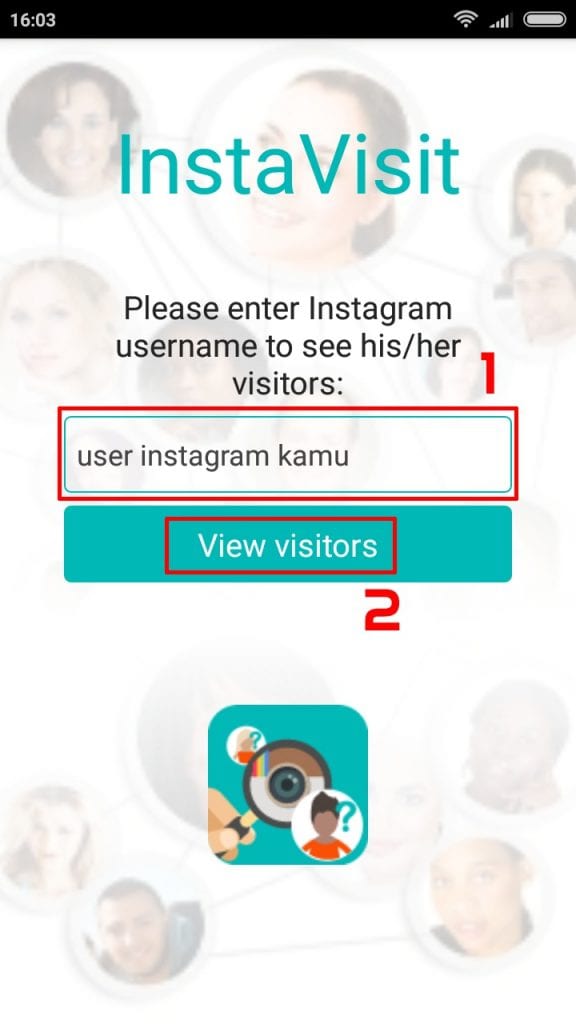 2. Kemudian masuk ke aplikasi, tuliskan username instagram kamu pada kolom yang sudah di sediakan lanjut tap View Visitors.