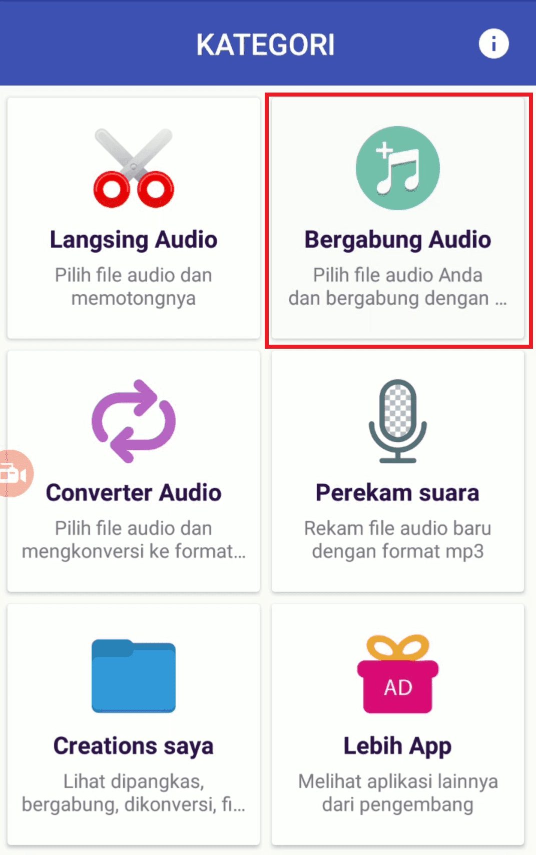 3. Lalu tap pada menu Bergabung Audio untuk menggabungkan beberapa musik menjadi 1.