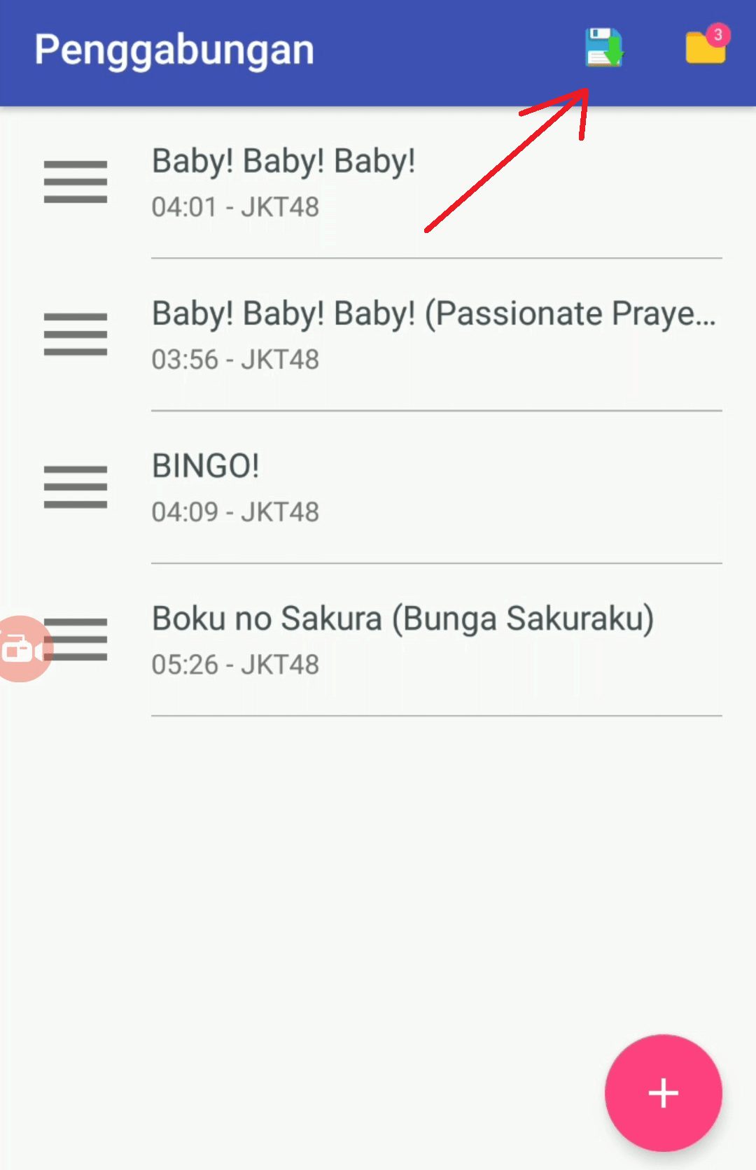 5. Kamu bisa atur urutan penempatan musiknnya sesuai keinginan kamu dengan menekan dan memindahkan musik ke urutan yang kamu inginkan, jika sudah yakin kamu bisa tap tanda disket yang berada disudut kanan atas untuk menyimpan berkas audio tersebut.