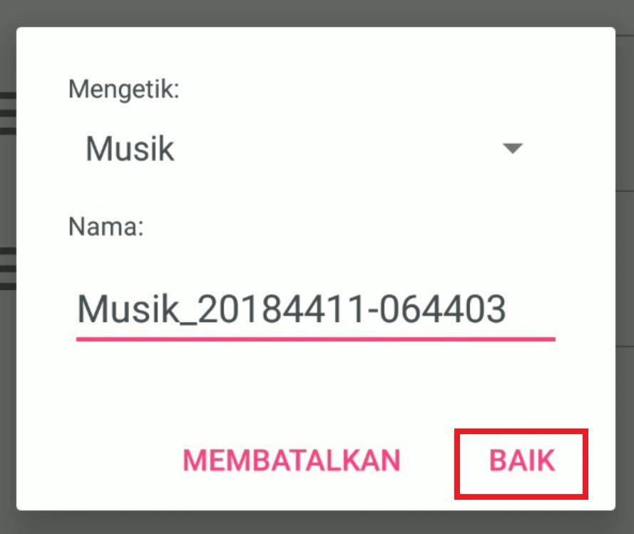 6. Lalu kamu akan diminta untuk memberikan nama berkas audio tersebut lalu kamu tap Baik dan berkas audio akan segera disatukan oleh aplikasi tersebut.
