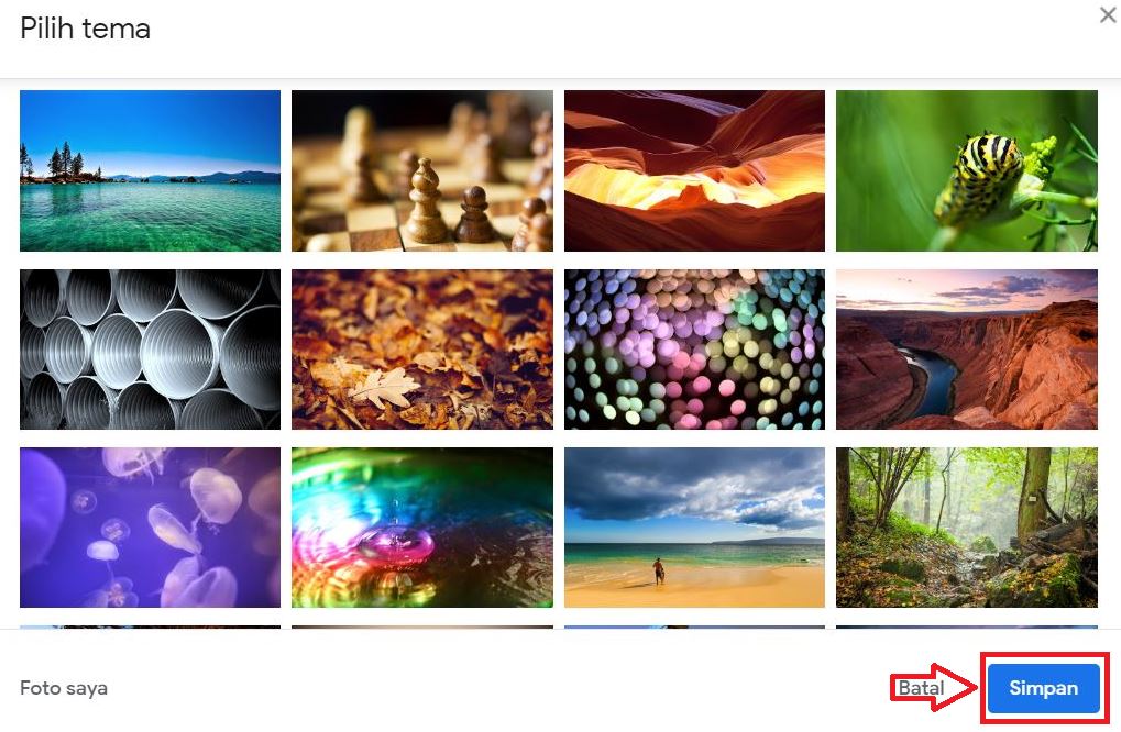 4. Pada tahap berikutnya, tinggal kamu masukkan saja jenis tema dengan selera kamu suka, kamu juga bisa memasukkan tema dengan foto pribadi kamu dan jangan lupa pilih simpan.