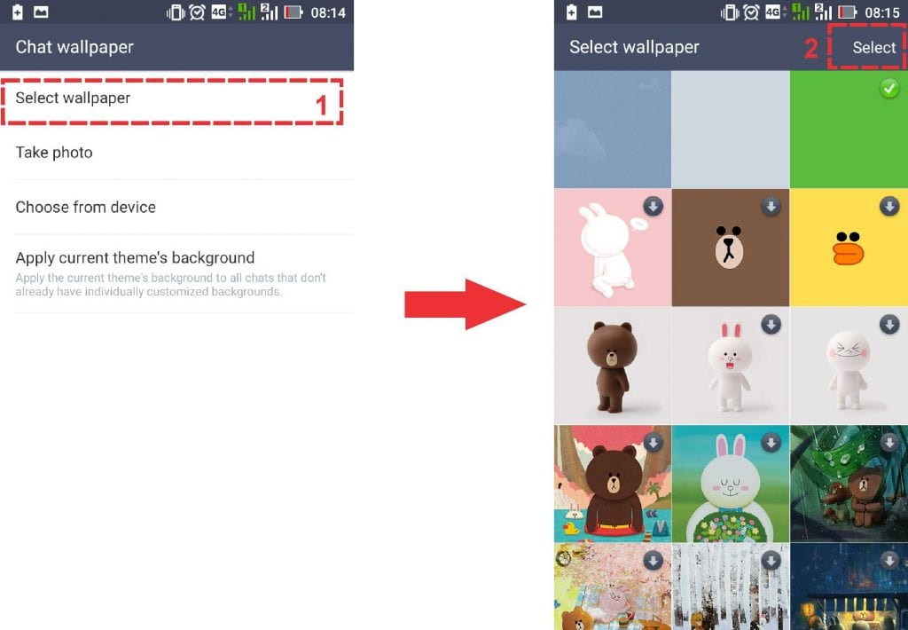 Catatan: Selain memilih wallpaper dari template yang disediakan oleh LINE, kamu juga bisa memilih wallpaper dari foto atau file gambar yang terdapat di perangkat smartphone kamu.