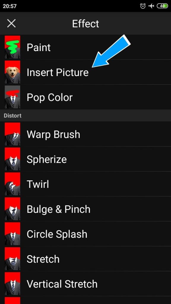 4. Jika sudah, selanjutnya kamu berada di halaman Effect langsung saja klik Insert Picture dan masukkan foto kamu usahakan sedang lurus menghadap ke depan ya.