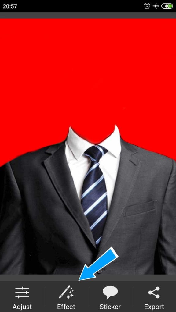 3. Selanjutnya, otomatis kita dialihkan ke halaman penampilan foto jas kemeja yang sudah kamu masukkan tersebut, maka langsung saja kamu pilih menu Effect.
