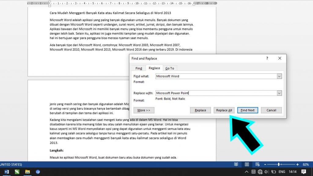 6. Klik Replace All untuk mengganti semua kata atau kalimat yang sudah dipilih.