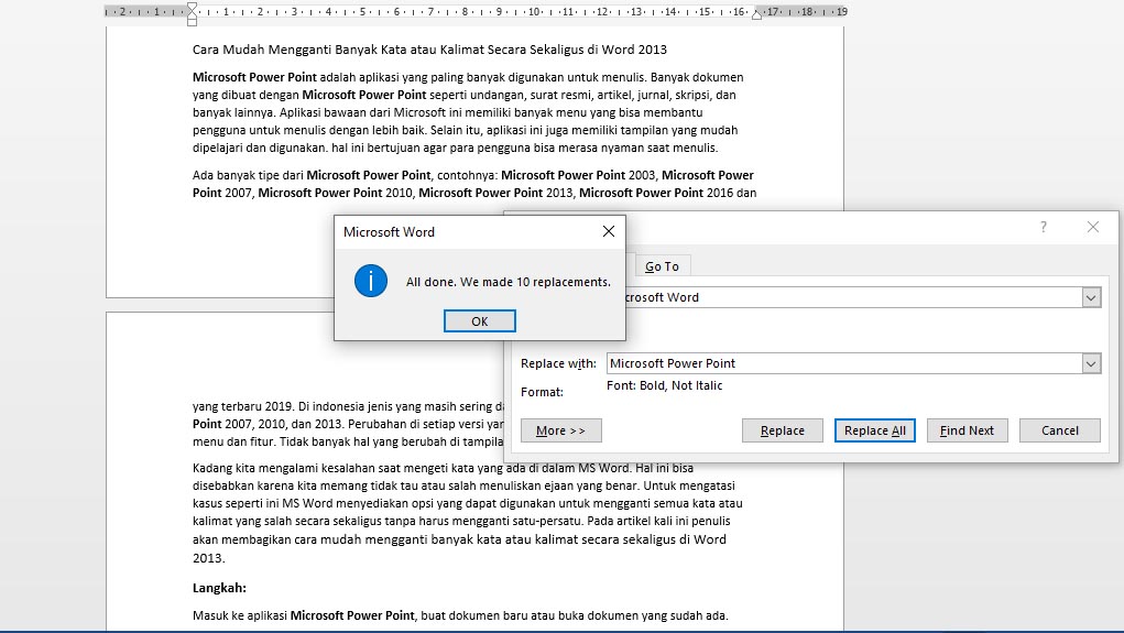 Itulah cara mudah mengganti banyak kata atau kalimat secara sekaligus di Word 2013. Selamat mencoba.