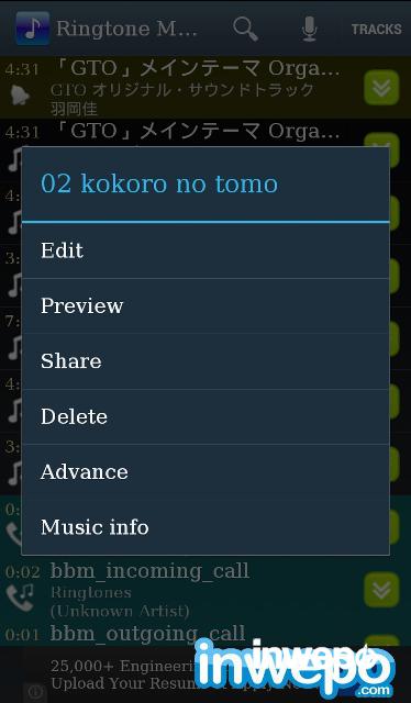 1. Download ringtone maker di Google Play, jalankan pilih lagu yang ingin kamu jadikan nada dering. Kamu juga bisa memotong lagunya sesuai keinginan