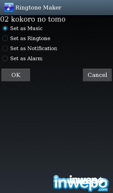 4. Pilih salah satu “set as ringtone/notification/alarm” kemudian tekan ok.