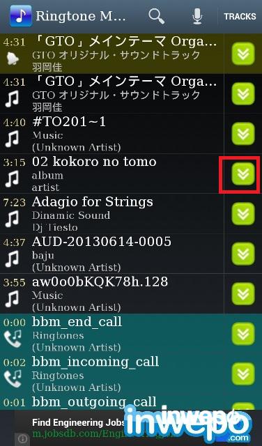 5. Untuk memotong lagu, ke menu utama list lagu kemudian tekan tombol warna hijau di samping.
