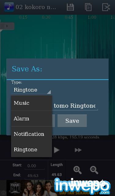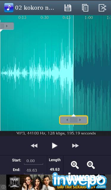 7. Sesuaikan dan geser garis lagu yang ingin dipakai. Jika sudah kemudian tekan icon save.