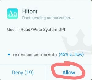 6. Setelah itu, akan muncul Pop-Up dari SuperSu / Kingroot. Pilih ‘Allow‘.
