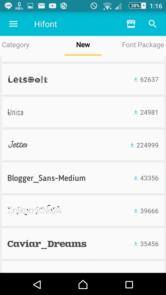 3. Setelah Open, pilih jenis Font yang mau di download.
