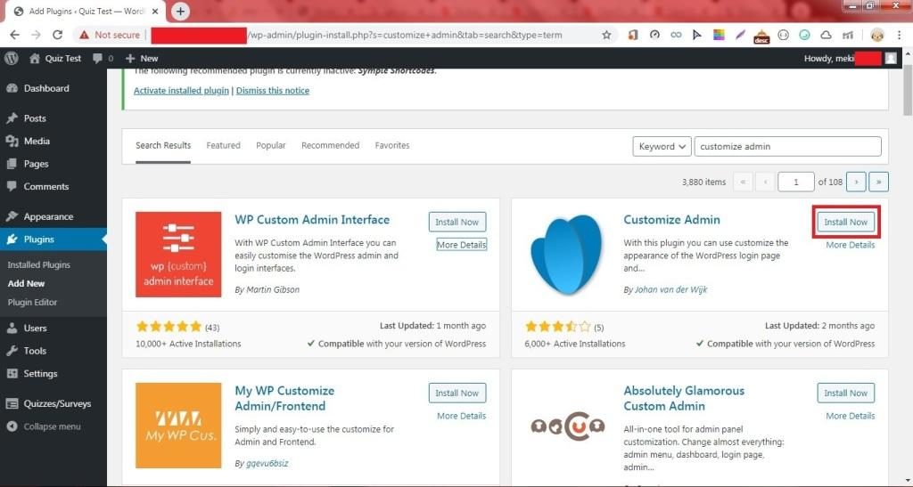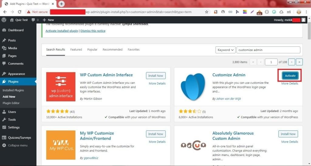 5. Ketikkan “customize admin“. Tekan Enter.