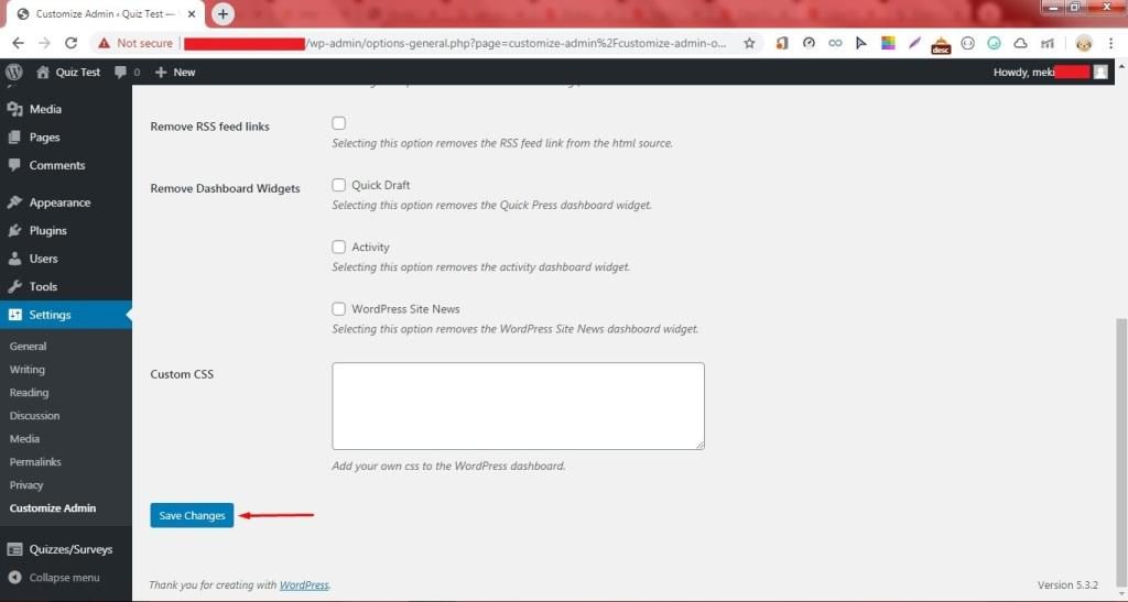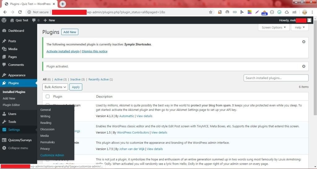 8. Klik Settings – Customize Admin.