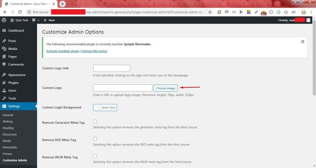 9. Klik Choose Image pada kolom Custom Logo untuk memilih gambar logo yang akan ditampilkan pada halaman WP Login.
