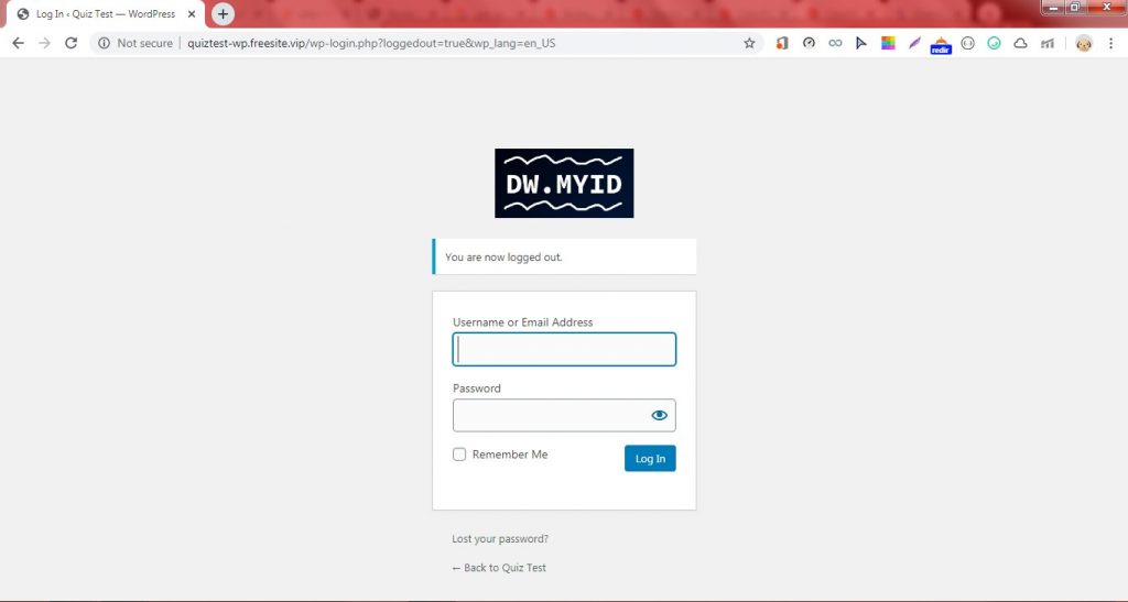 11. Klik Profil Admin  – Logout. Berikut hasil perubahan gambar logo yang ditampilkan halaman WP Login.