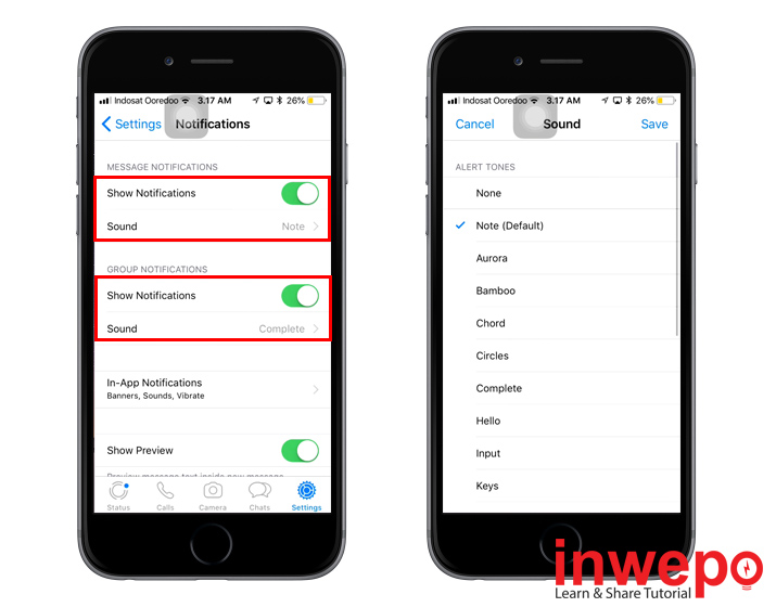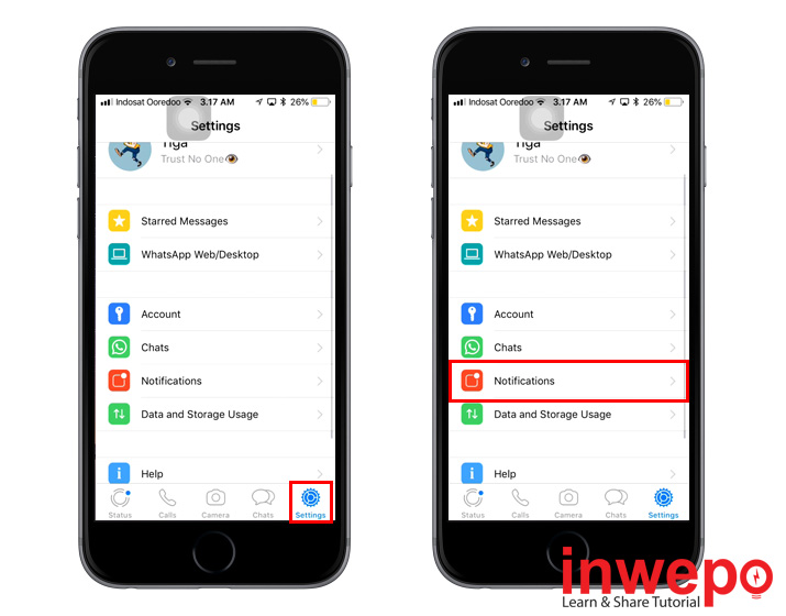 1. Buka WhatsApp – Pergi ke Settings – Ketuk Notifications.