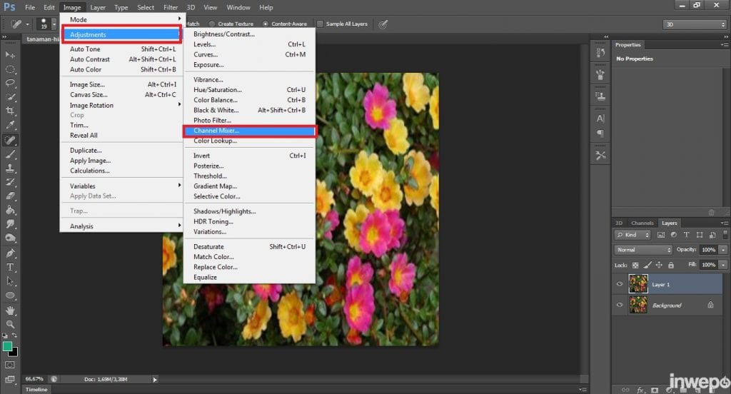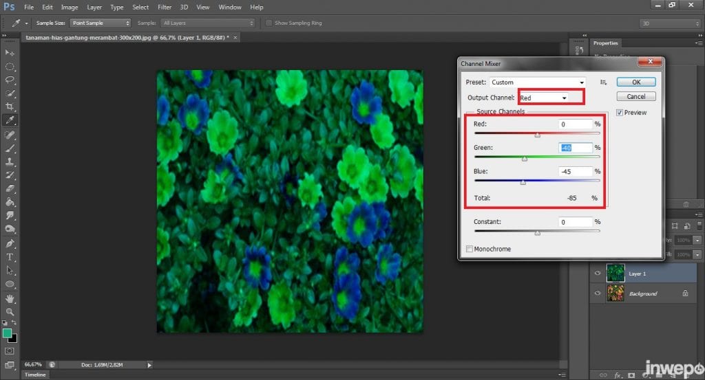 Masuk ke menu Image – Adjustment – Channel Mixer