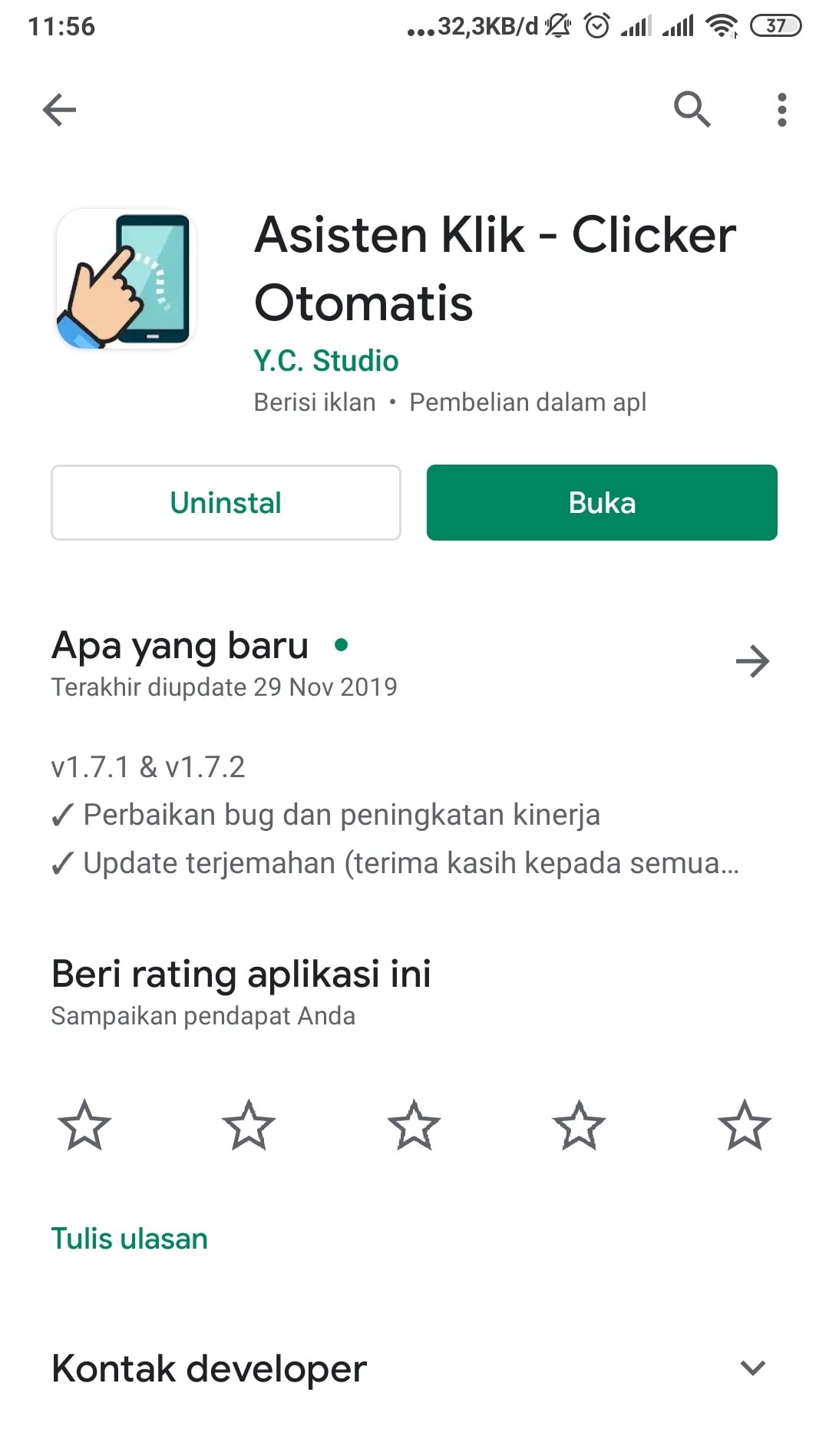 1. Langkah pertama adalah buka Play Store, lalu cari aplikasi bernama “Asisten Klik”. Setelah itu Install aplikasi tersebut di hp Android kamu.
