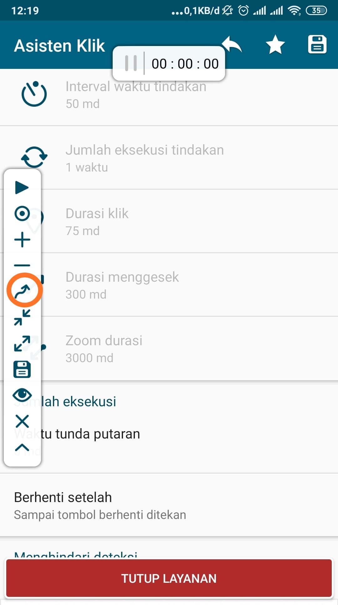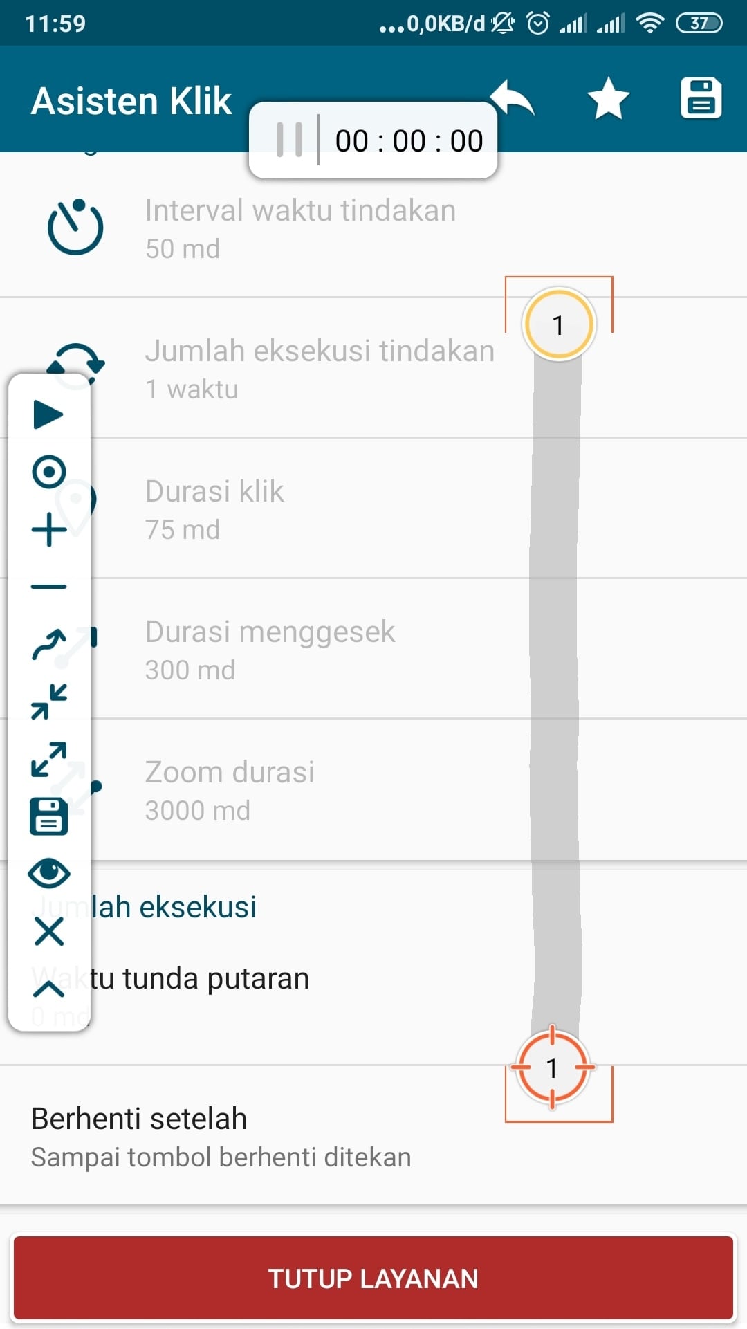 7. Langkah terakhir, untuk menjalankannya ketuk gambar play pada mini toolbar di sebelah kiri. Pada sisi atas ada panel penghitung waktu untuk mengetahui seberapa lama kita menggunakan penggeser layar otomatis ini.