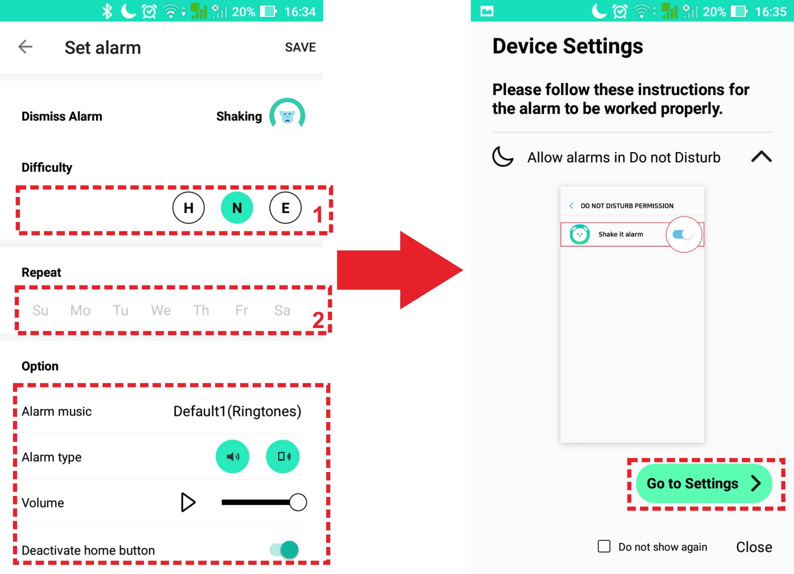 3. Langkah selanjutnya, tentukan tingkat kesulitan dari penonaktifannya. Kemudian tentukan pula pengulangan pengaktifan dari alarm tersebut. Selain itu kamu juga mengatur kustomisasi lainnya, seperti volume dan musik alarm. Jika sudah klik save.