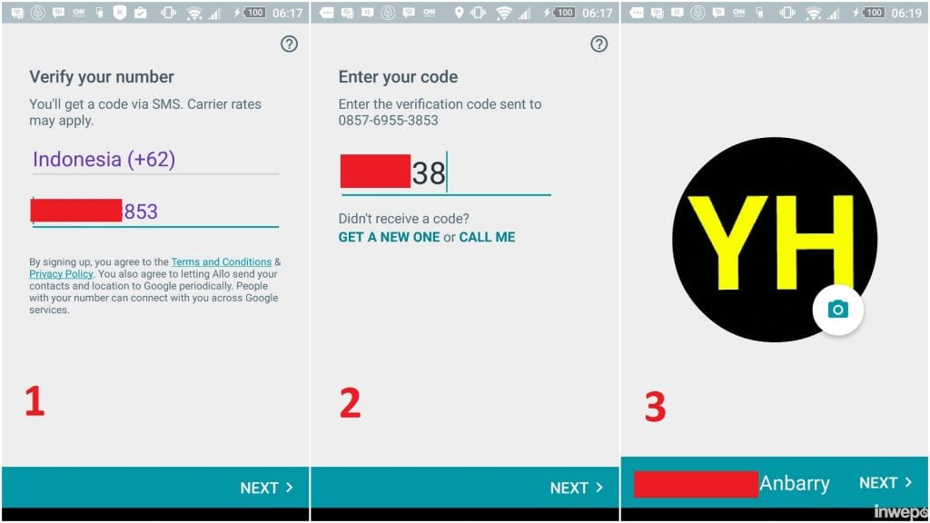 2. Buka aplikasi Google Allo, kemudian masukkan nomor HP Anda.