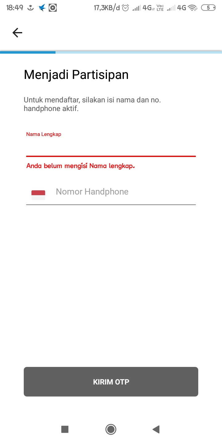 3. Setelah itu isi Nama lengkap dan Nomor Telepon yang ada di smartphone kamu.
