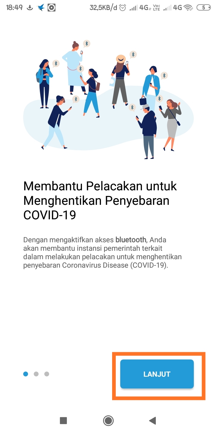 2. Buka Aplikasi PeduliLindungi, lalu Tap “Lanjut”