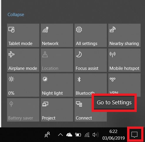 1. Kamu klik pada icon pesan di taskbar sebelah kanan, lalu klik kanan pada menu Bluetooth dan klik pada Go to settings.