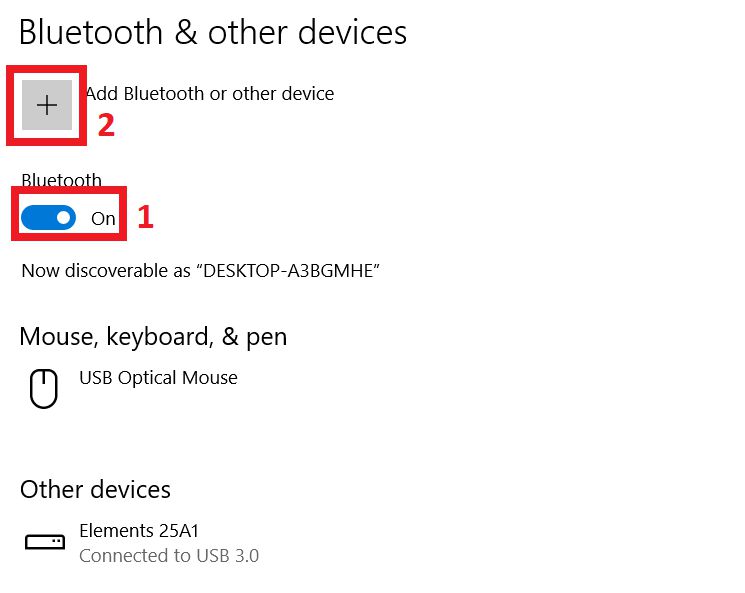 2. Lalu kamu ubah posisi Bluetooth menjadi ON, dan kamu klik pada tombol + untuk menambahkan device baru di Windows 10 kamu.