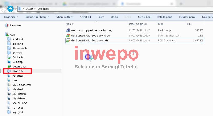 Catatan: Setiap berkas yang kamu salin ke folder Dropbox kamu, maka secara otomatis aplikasi Dropbox akan mengunggah berkas tersebut ke akun Dropbox kamu.