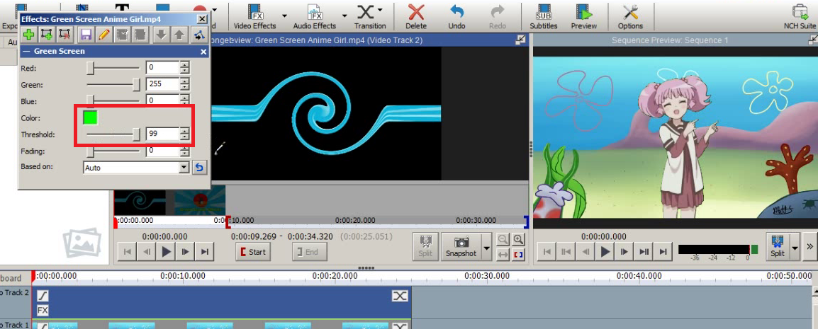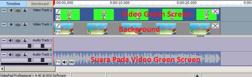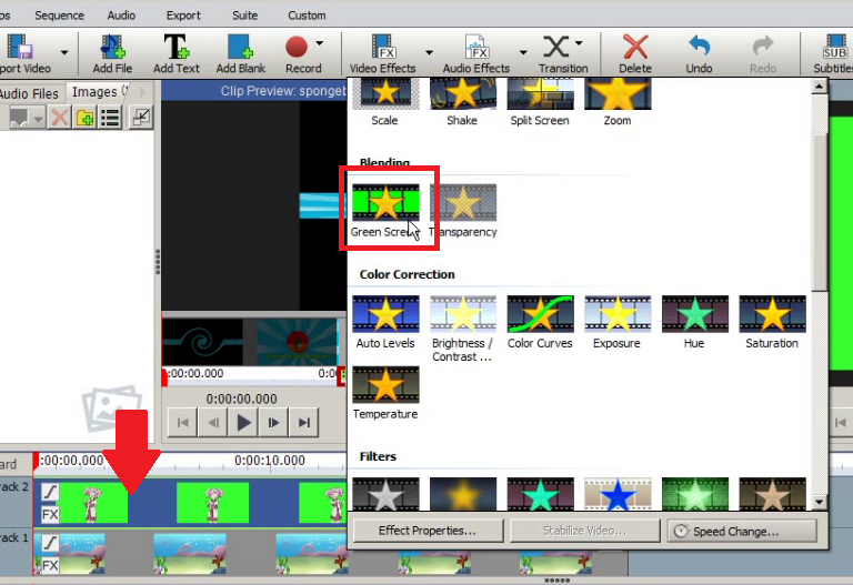 4. Lalu klik pada Video Track 2 (Video Green Screen) dan klik menu Video Effects dan klik pilihan Green Screen.