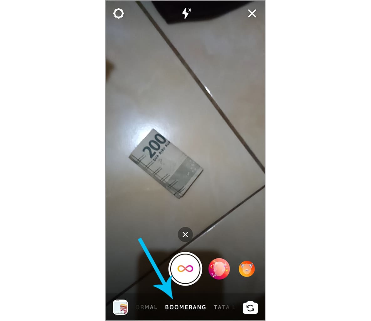 5. Ketika Boomerang sudah jadi, silakan ketuk ikon Boomerang yang terletak di posisi atas.