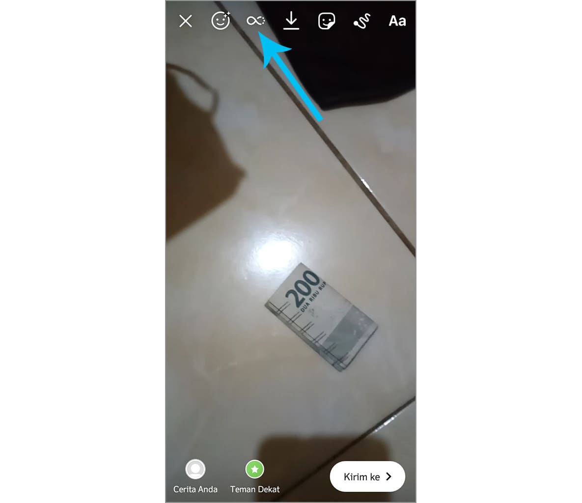 3. Pilih mode Boomerang pada kamera Stories.