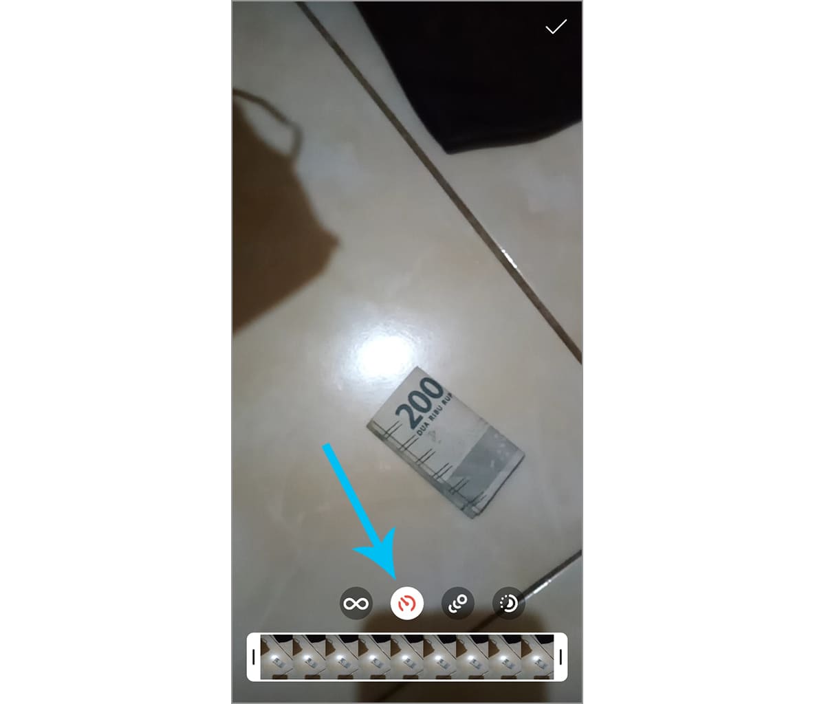 7. Jika sudah selesai, silakan ketuk tanda centang, dan Boomerang sudah siap dibagikan di Stories kamu.