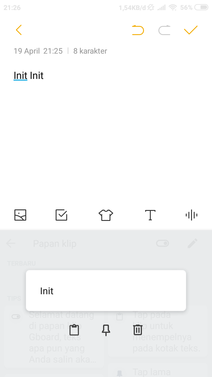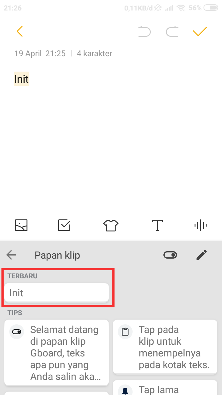 5. Untuk memastikan bahwa fitur clipboard telah aktif, lakukan penyalinan teks / kalimat sebagai bentuk percobaan.