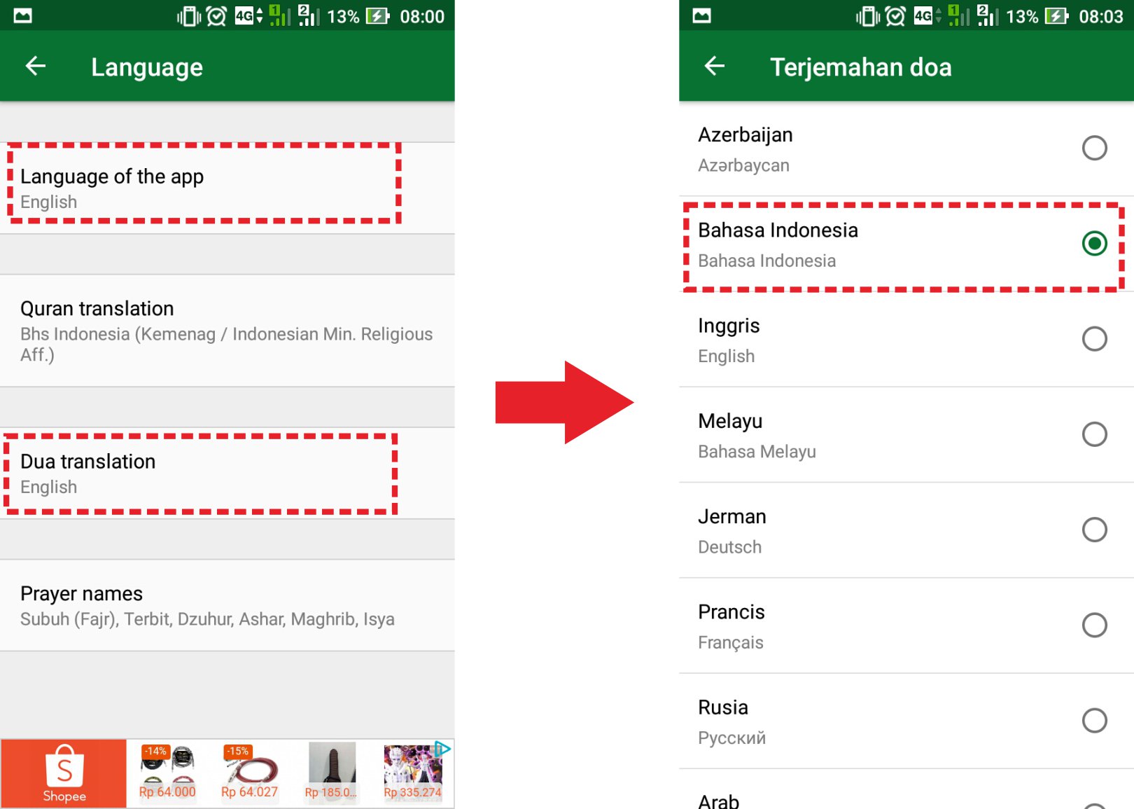 2. Ubah bahasa ke bahasa Indonesia pada menu Language of the app dan dua translation. Jika sudah maka secara otomatis pengaturan bahasa akan berubah menjadi bahasa Indonesia.