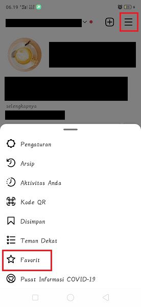 5. Untuk membuka fitur Favorit di aplikasi Instagram, tap menu Profile akun Instagram kamu dan kemudian tap ikon tiga garis yang berada disisi kanan atas halaman Profile. Tap menu Favorit untuk melihat akun Instagram favorit kamu.
