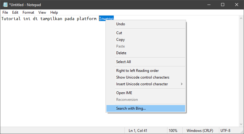 Pada artikel kali ini, kita akan menggunakan fitur pencarian kata pada internet melalui aplikasi Notepad di Windows 10.