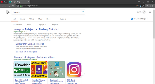 4. Jika berhasil, nantinya akan muncul halaman browser yang berisikan pencarian terkait dengan kata atau kalimat yang telah kita pilih sebelumnya.