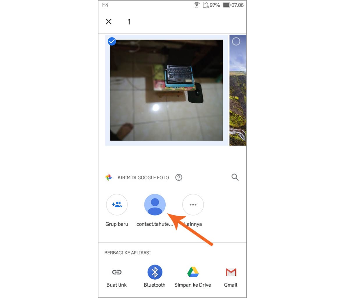 4. Pilih pengguna yang ingin kamu kirimi foto. Pengguna yang dikirimi foto sendiri bisa perseorangan maupun grup. Pada tutorial kali ini, yang dikirimi adalah perseorangan.