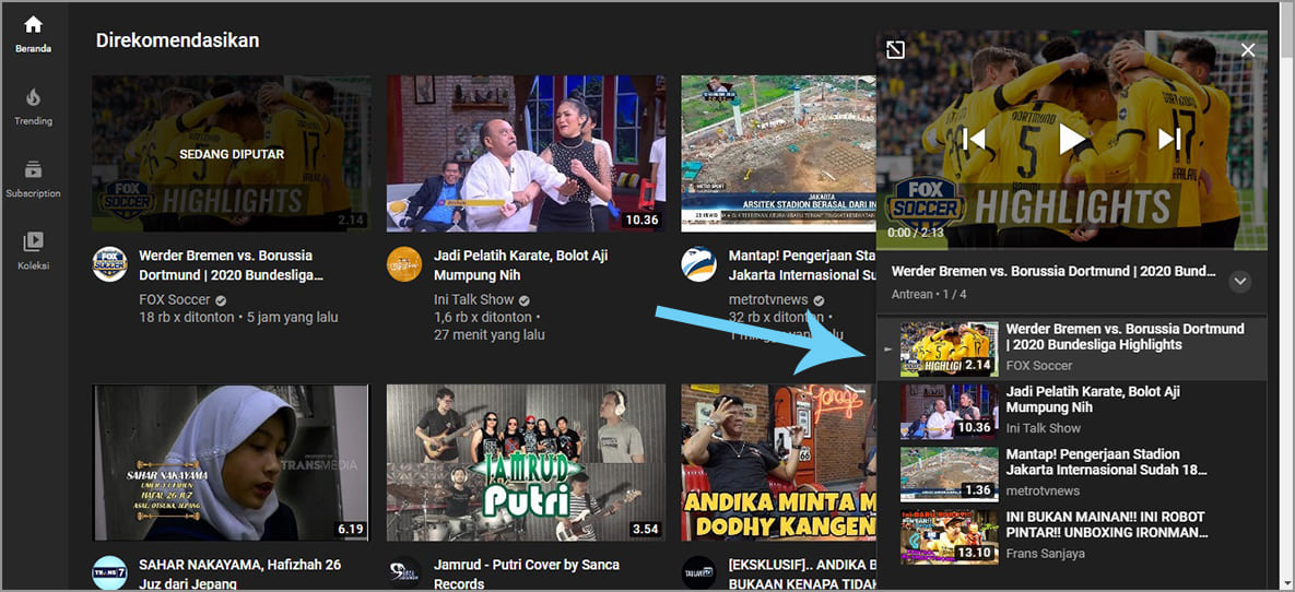 Yang paling menyenangkan ketika menggunakan fitur ini adalah kamu bisa menonton video sambil mencari-cari video lain yang hendak ditonton karena fitur tambahkan ke antrean bisa dilihat melalui layar mini maupun layar penuh.
