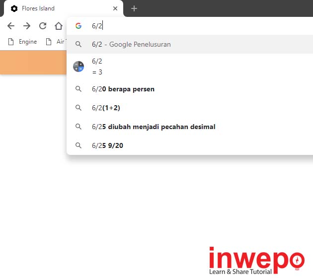 Jadi Omnibox atau address bar yang fungsinya tidak hanya untuk menuliskan alamat website dan sebagai kolom pencarian, tapi juga salah satunya dapat digunakan untuk melakukan perhitungan matematika sederhana. Untuk perkalian gunakan tanda: * (bintang), untuk pembagian gunakan tanda: / (garis miring), untuk penambahan dan pengurangan gunakan + dan – . Kamu tidak perlu menekan enter, karena bila kamu menekan enter maka akan masuk ke pencarian Google, cukup masukkan perhitungan dan akan muncul hasilnya, dan pastikan jaringan internet kamu stabil.