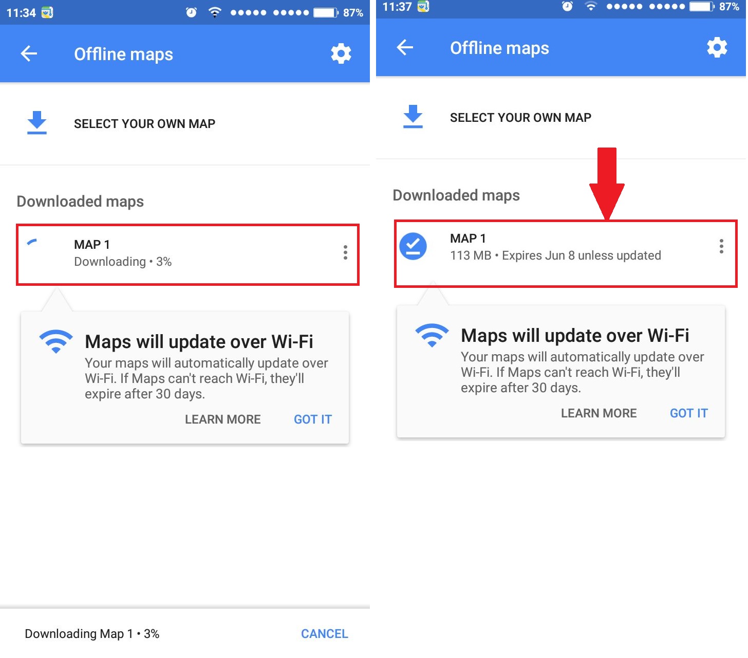 3. Tunggu proses download hingga selesai – Selanjutnya Tap map 1 yang sudah di download untuk siap di gunakan.