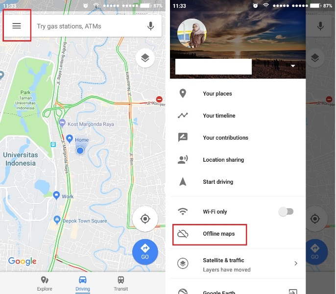 1. Buka aplikasi Google Maps di ponsel kamu – Tap ikon ≡ di pojok kiri atas – Tap Offline maps (peta offline).