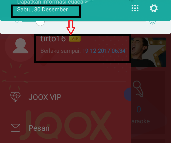 4. Jika sudah mendapatkan VIP perhatikan tanggal VIP berakhir. Jangan masuk JOOX dengan jaringan internet yang menyala maka kamu tetap akan menikmati layanan VIP walaupun masa berlaku sebenarnya telah habis,